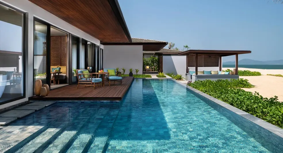 Among the finest beach resorts in Vietnam, surrounded by mountain on three sides and overlooking the Bay of Quy Nhon, Anantara Quy Nhon Villas offers beachfront basking and adventurous discoveries. Only 25 luxury pool villas dot seven acres of lush landscaping fronting a private cove.