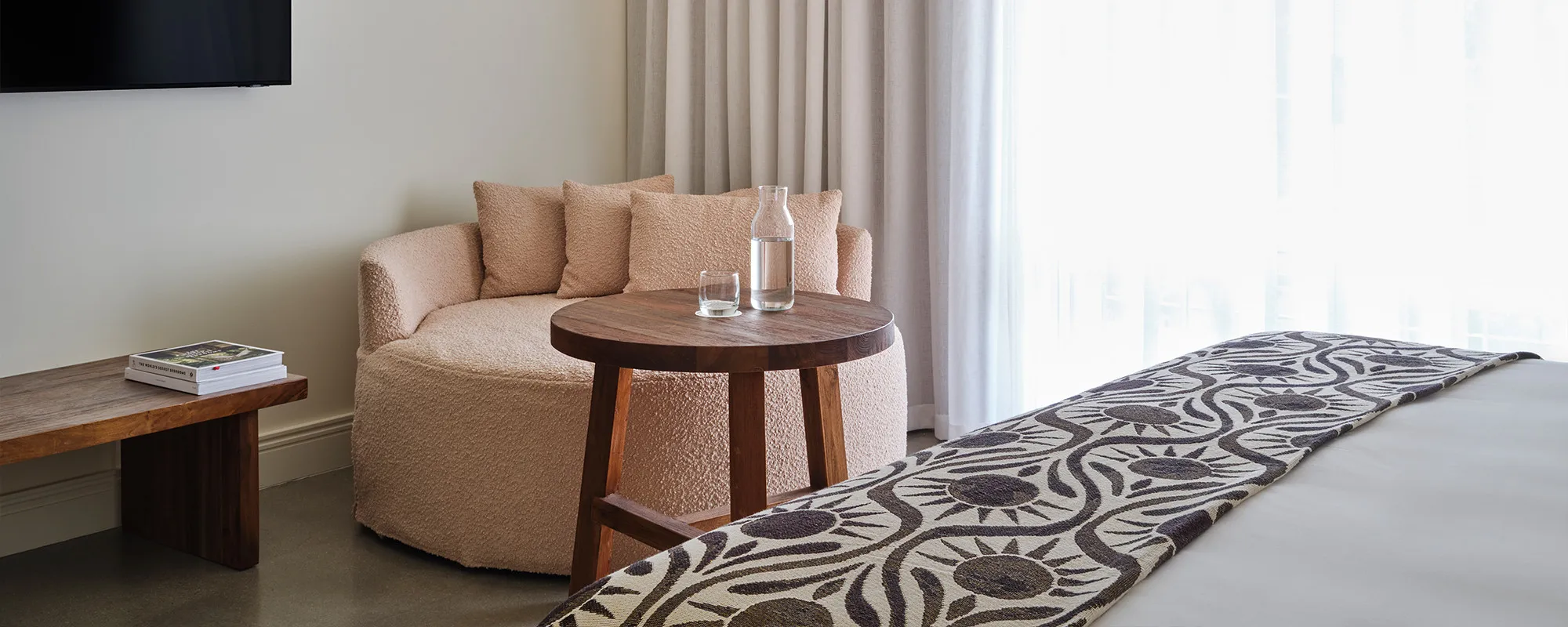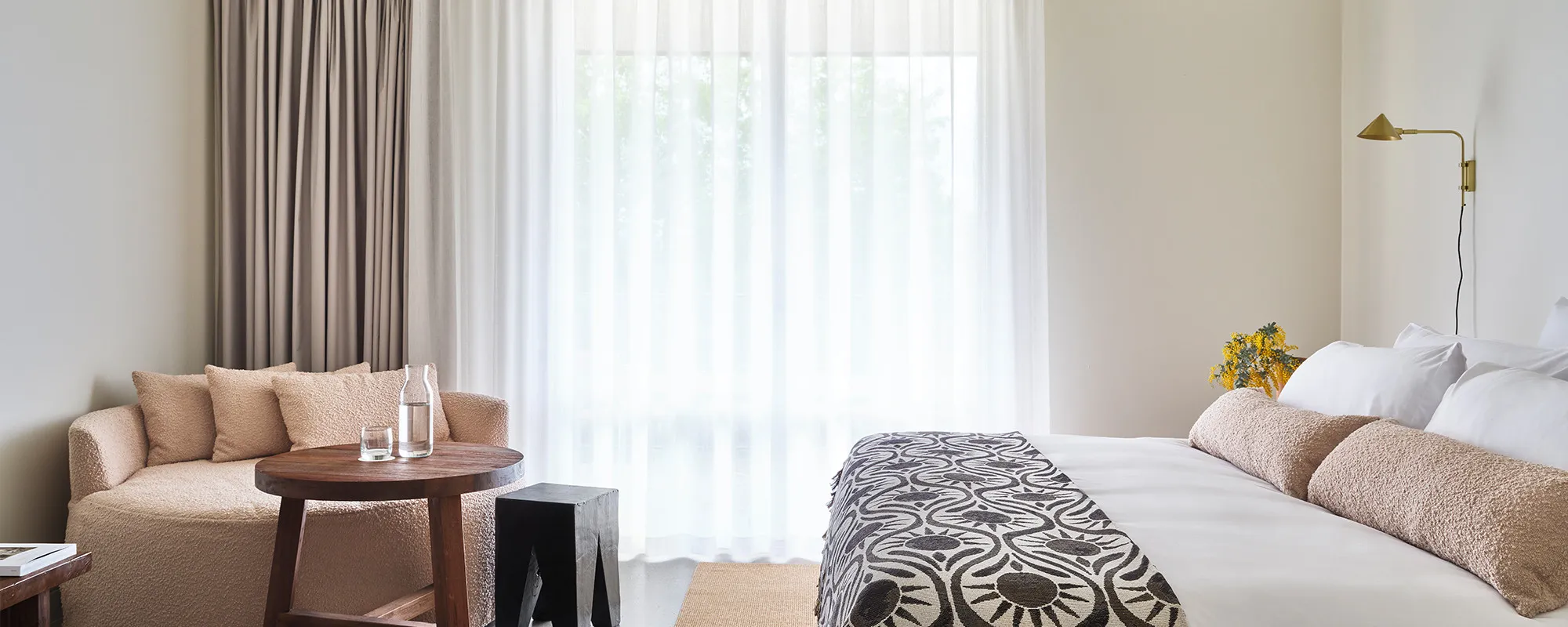 Drawing inspiration from the local environment, the 40-room boutique hotel is a carefully curated space that connects you to nature and its surroundings, subtly integrating the magic of the area within the design. Our Milawa accommodation has both indoor and outdoor spaces that flow freely regardless of temperature, allowing one to truly interact with the biosphere: the warmth of the sun during the summer and the comfort of fire when it cools. The Lancemore Milawa Hotel is a fashion-forward space that is sophisticated yet with a pared-back, unassuming aesthetic: offering freedom for travellers to connect and ground to where their inner spirit leads.
