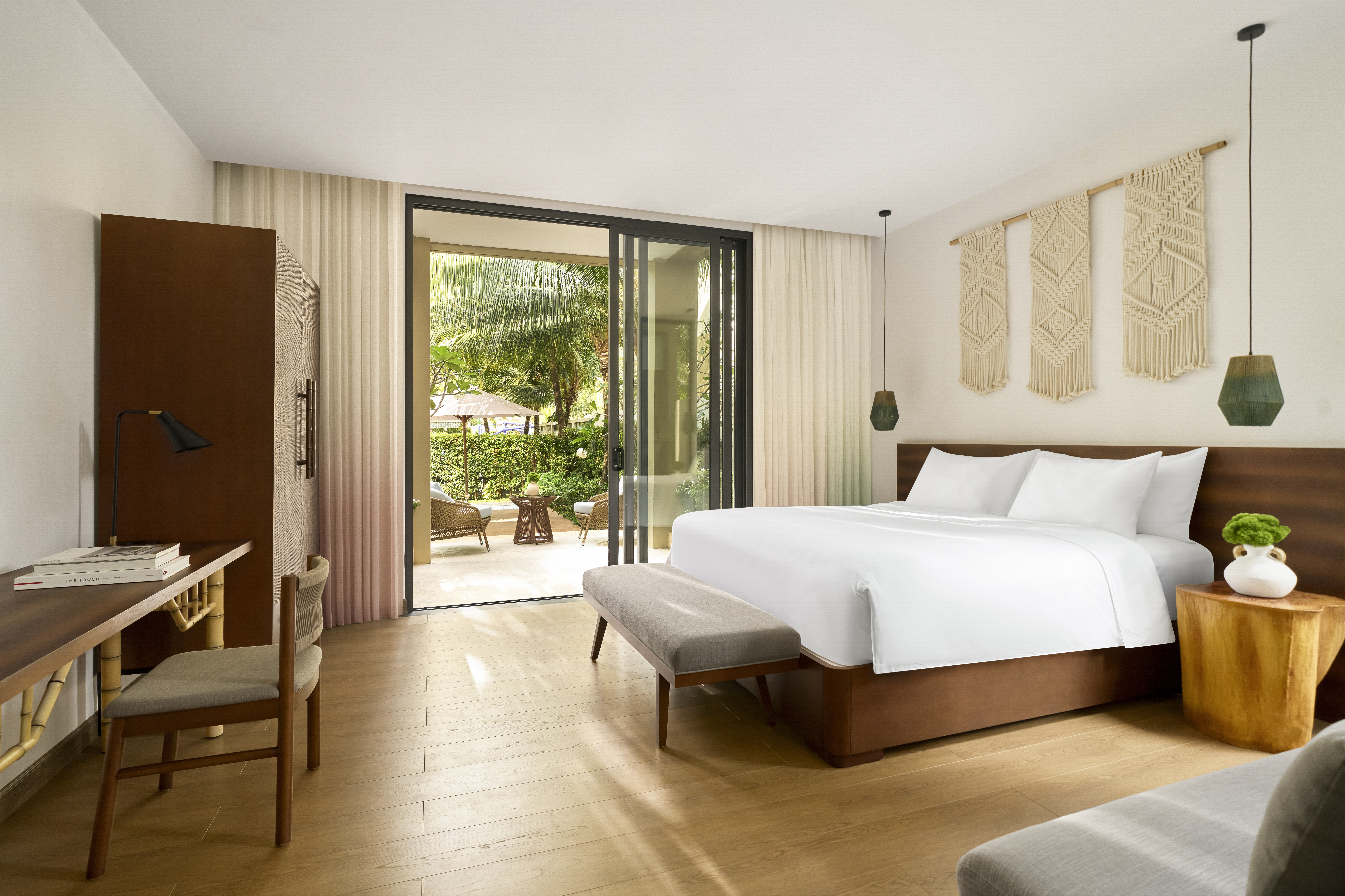 New World Phu Quoc Resort is situated on the southwestern tip of Phu Quoc, facing the acclaimed Khem Beach. Guests can choose from 366 villas in seven configurations, ranging from 125 to 415 square meters. Each thatched-roof villa includes a private swimming pool.