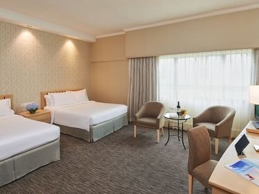 York Hotel Singapore features 407 rooms, including tastefully appointed guest rooms, suites and Balinese-styled cabanas along with a Tower Block that offers non-smoking rooms exclusively. Leisure pleasures include a guests-only outdoor swimming pool, and sundeck and a fitness centre outfitted with the latest weight and cardio training equipment. Our signature restaurant, White Rose CafĂ©, serves an eclectic selection of Western and Asian cuisine and hosts the Penang Hawkers’ Fare, where authentic Penang hawkers dish out their tasty specialties. Our seven versatile conference and event facilities are suitably equipped to cater to a diverse range of functions with personalised catering and meeting planning services.